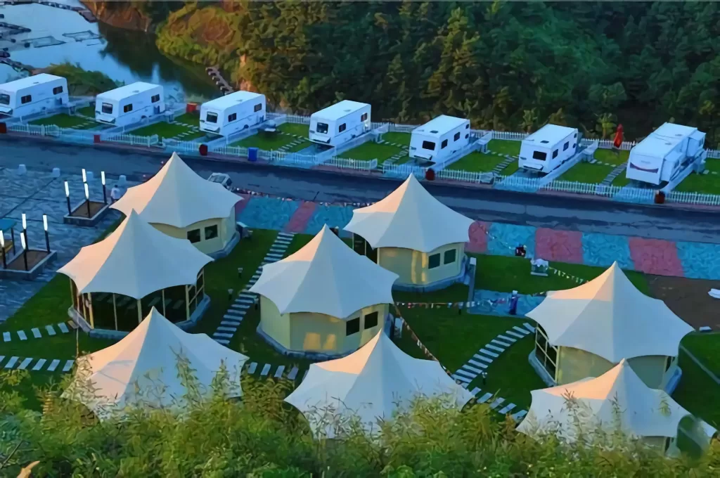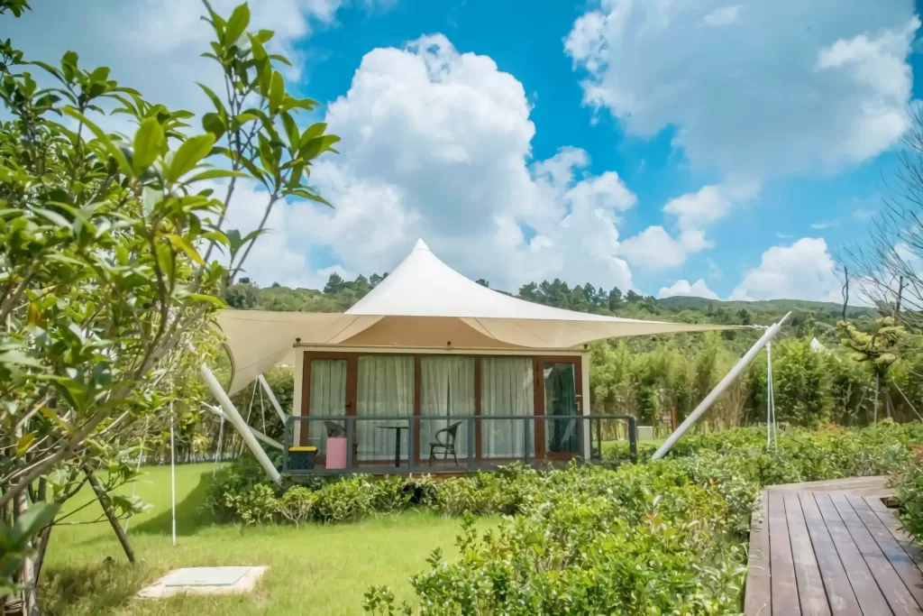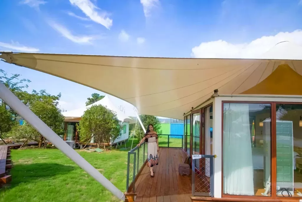 户外豪华露营帐篷秉承着对大自然的敬畏与热爱。在这个偏远而安静的户外环境中,一切都与自然和谐相处。它是想要沉浸在崎岖荒野、原始传统和野生动物中的旅行者的最佳选择。在逗留期间,他们可以参加各种活动,探索广阔的景观和开阔的野外风光。