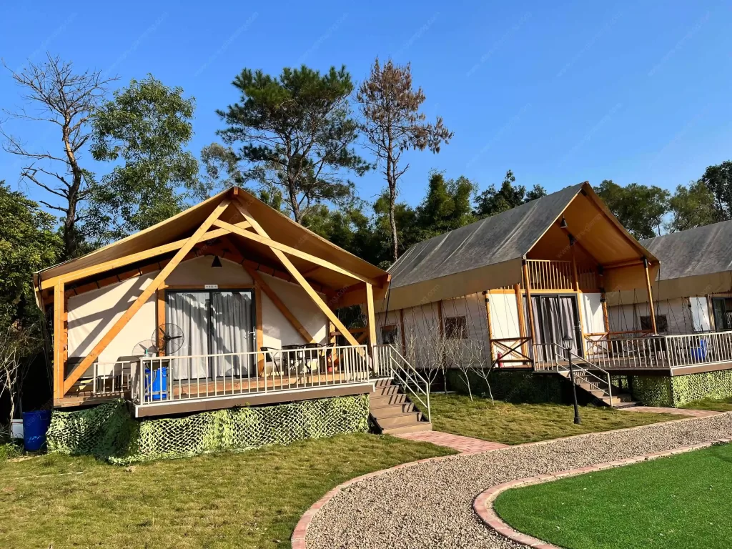 走出您的野营帐篷,探索户外美景,欣赏周围景观的壮丽景色。无论您是在寻找宁静的度假胜地还是充满冒险的假期,我们的野营豪华露营帐篷都是完美的大本营。不要错过这次独特而难忘的体验。今天就预订您的豪华露营帐篷,开始计划您的下一次冒险吧!