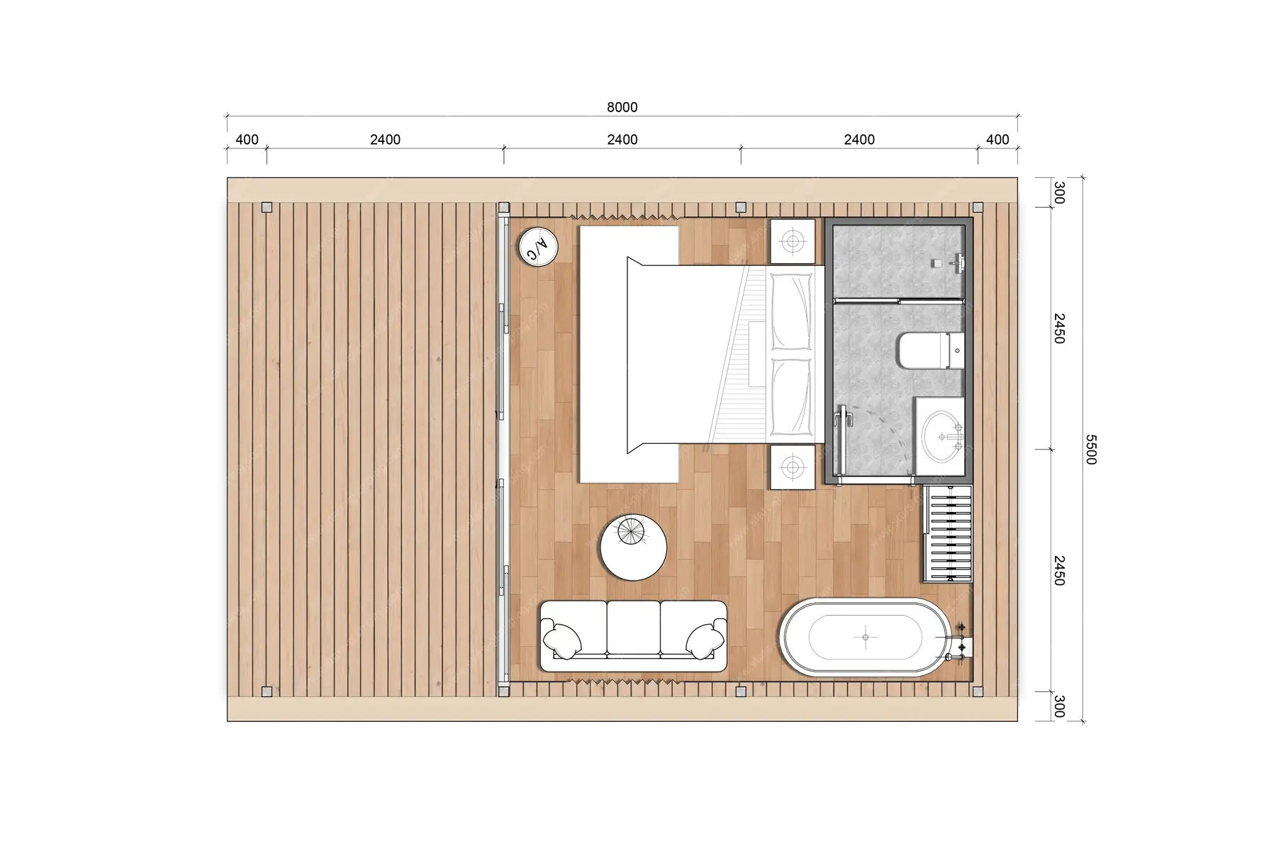 内部空间设计现代且宽敞,布局合理。帐篷内设有一个宽敞的卧室,配有豪华床铺,提供极致的舒适和良好的睡眠体验。起居区配有舒适的座椅和现代化家具,为客人提供一个放松和娱乐的理想空间。现代化的浴室设施齐全,提供淋浴和洗漱设备,确保客人在享受大自然的同时也能享有家的舒适。