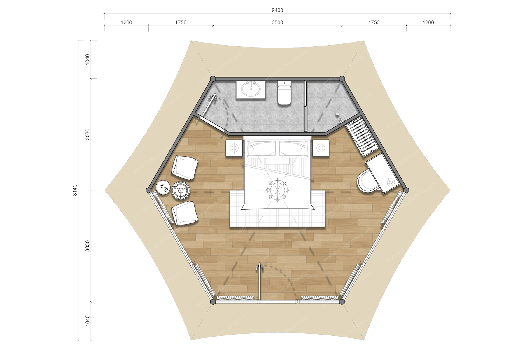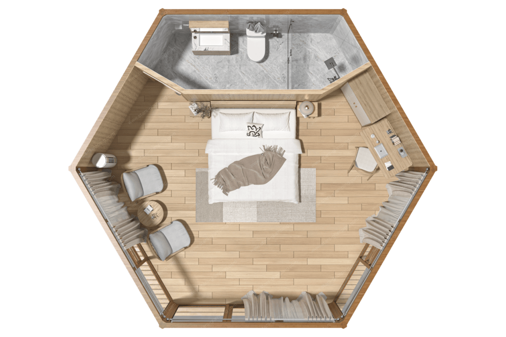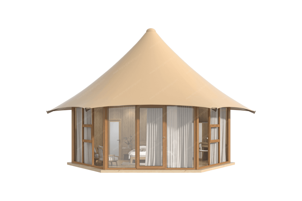 朝歌帐篷以其独特的六边形设计和豪华的内部装饰,为客人提供一个奢华且舒适的居住环境。帐篷采用高品质的材料和坚固的结构,确保在各种天气条件下提供可靠的保护。