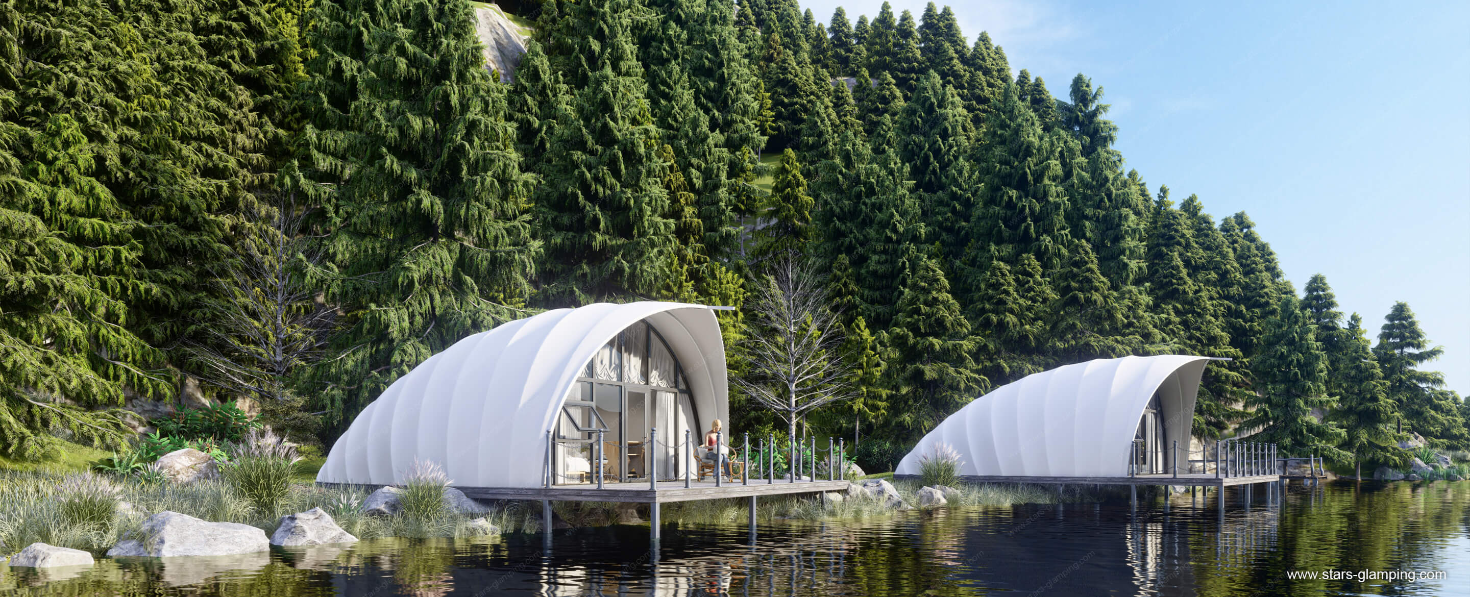 贝壳帐篷以其独特的贝壳形设计和宽敞的内部空间,为客人提供一个奢华且舒适的居住环境。帐篷采用高品质材料和坚固结构,确保在各种天气条件下提供可靠的保护。
