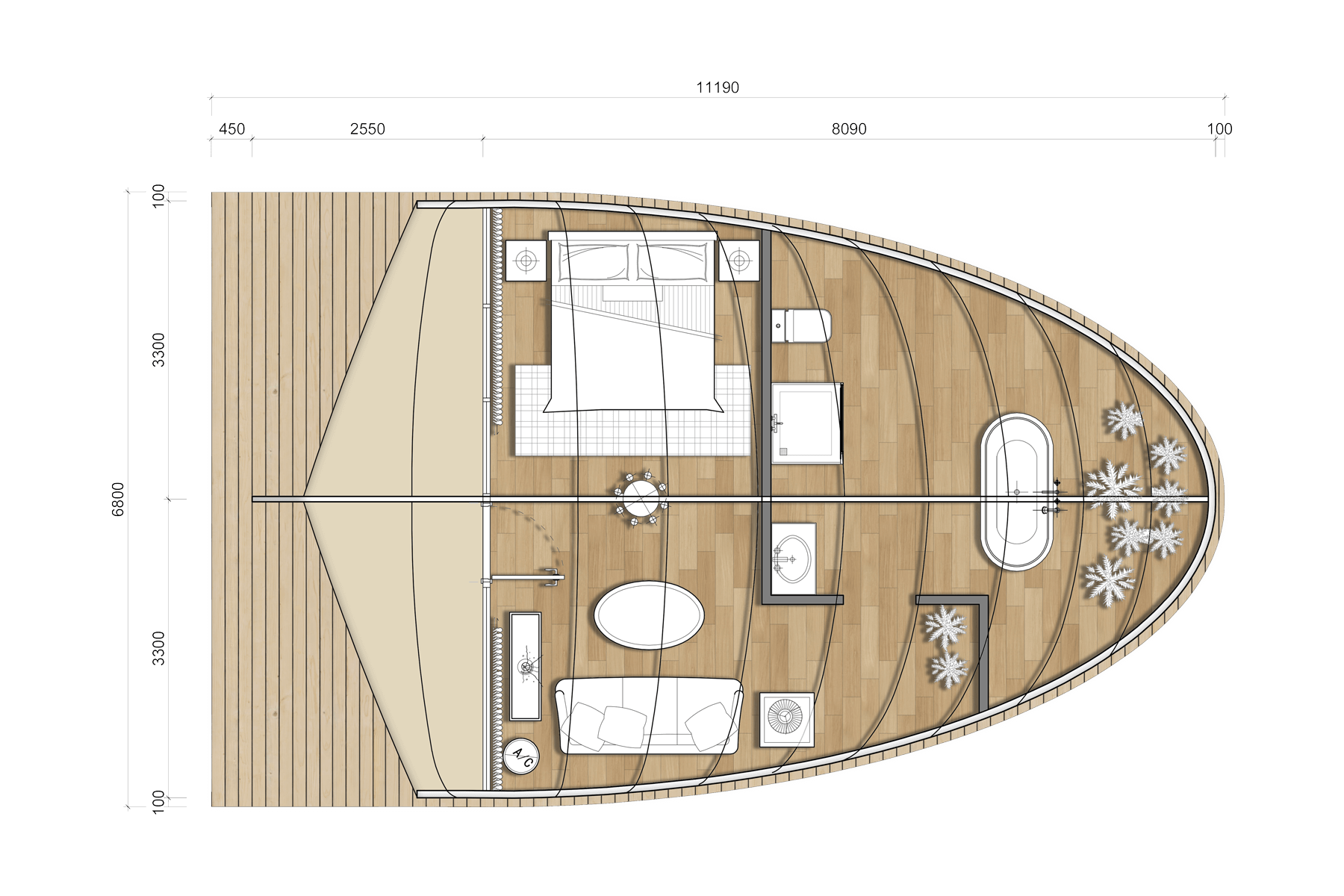 内部设计现代化且宽敞,布局合理。帐篷内设有一个豪华的卧室,配有舒适的床铺和现代化家具,为客人提供极致的舒适和良好的睡眠体验。起居区布置精美,配有舒适的座椅和现代化家具,为客人提供一个放松和娱乐的理想空间。现代化的浴室设施齐全,提供淋浴和洗漱设备,确保客人在享受大自然的同时也能享有家的舒适。