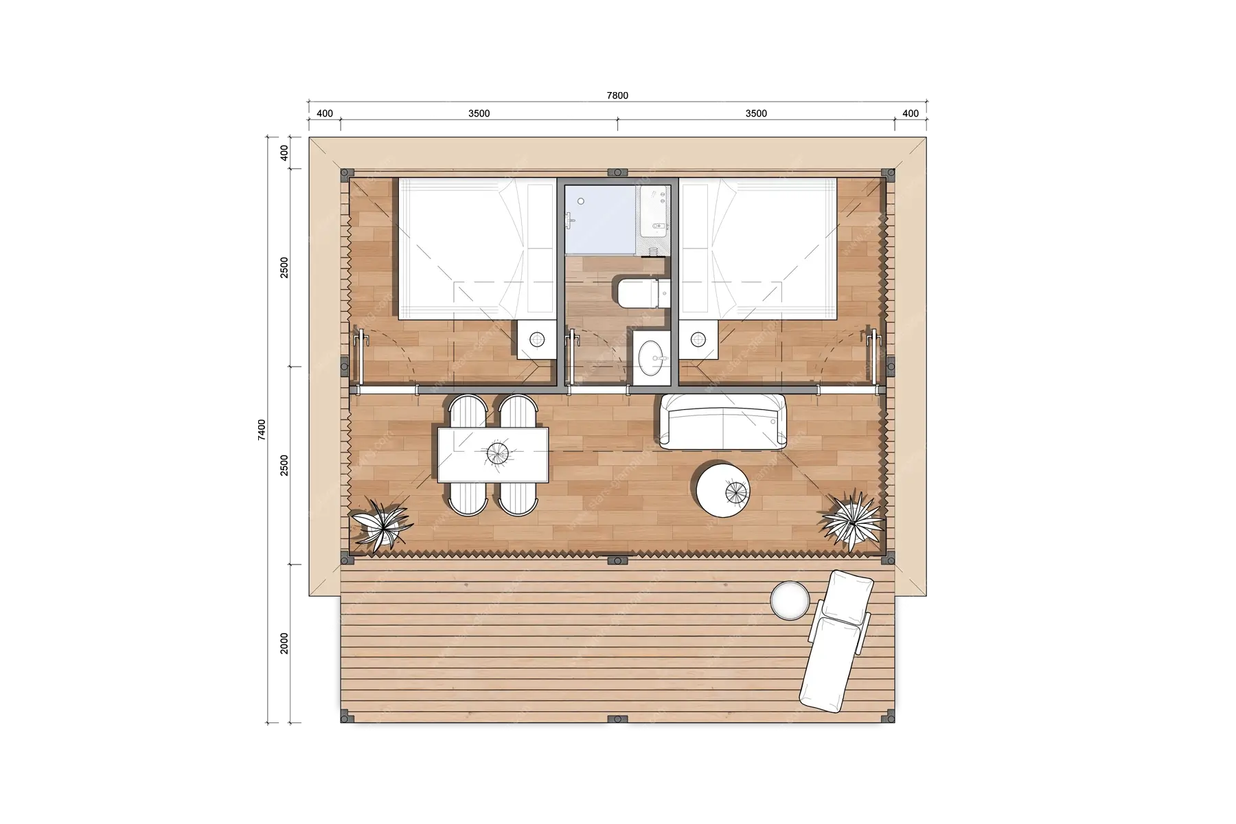 安曼帐篷以其宽敞的内部空间和精致的设计,为客人提供了一个豪华且舒适的居住体验。主体框架采用进口芬兰松防腐实木,确保了结构的坚固耐用。外层覆盖采用850g/㎡的PVC双面刀刮涂层布,具有出色的防水和抗紫外线性能;内层则采用900D高密涤纶坐牛津布,增加了帐篷的舒适度和耐用性。