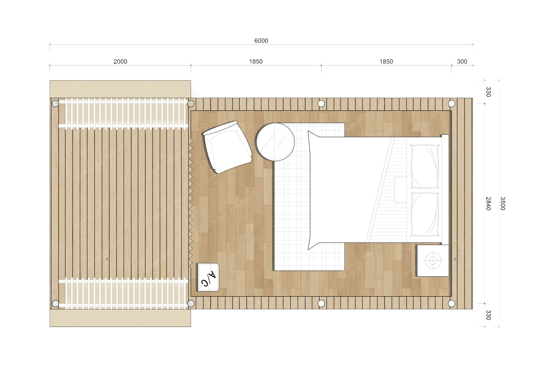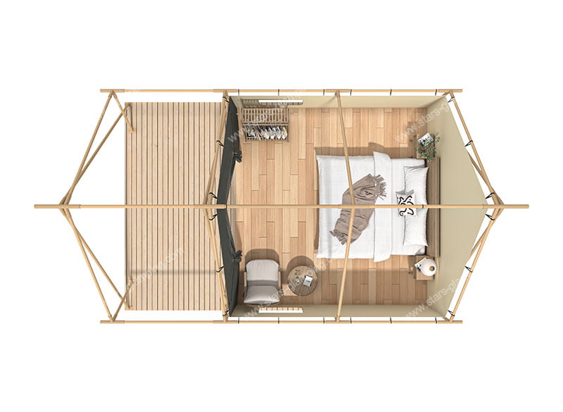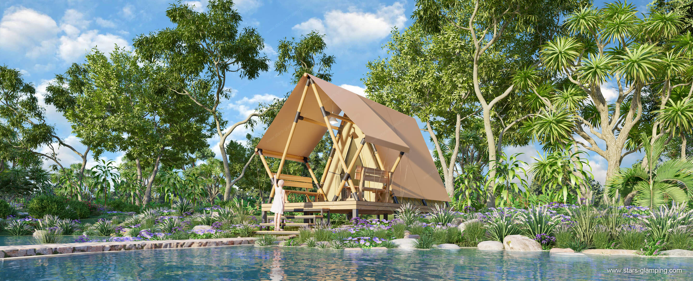 该帐篷适用于各种高端住宿场所,如酒店、度假村和精品民宿等,为客人提供了一个独特的住宿体验。内部布局合理,包括舒适的卧室、现代化的浴室、起居区和开放的露台,营造出一个既私密又开放的居住空间。无论是浪漫的度假情侣还是小家庭,星野帐篷都能满足他们的需求,提供一个豪华且与自然亲密接触的居住空间。