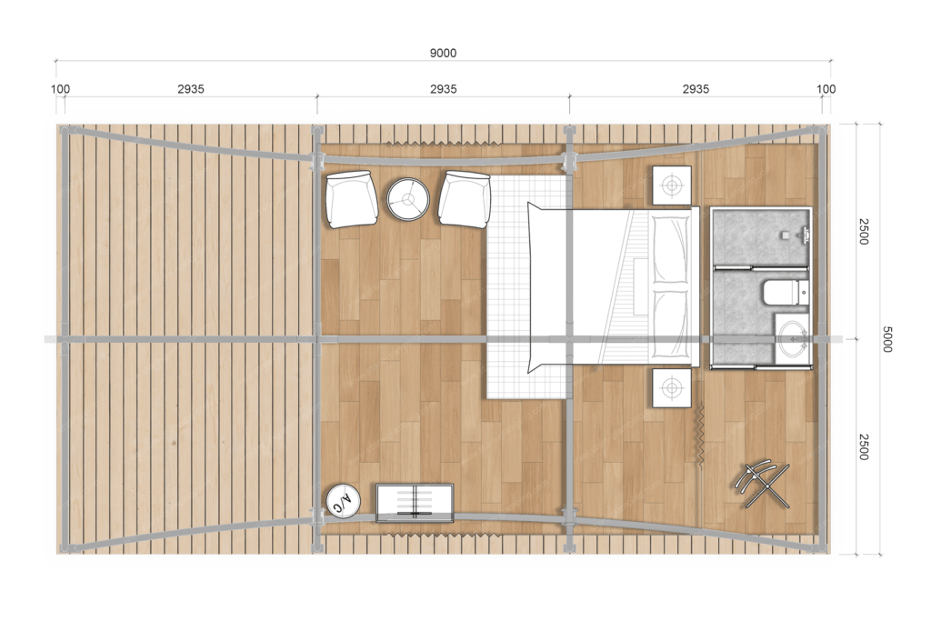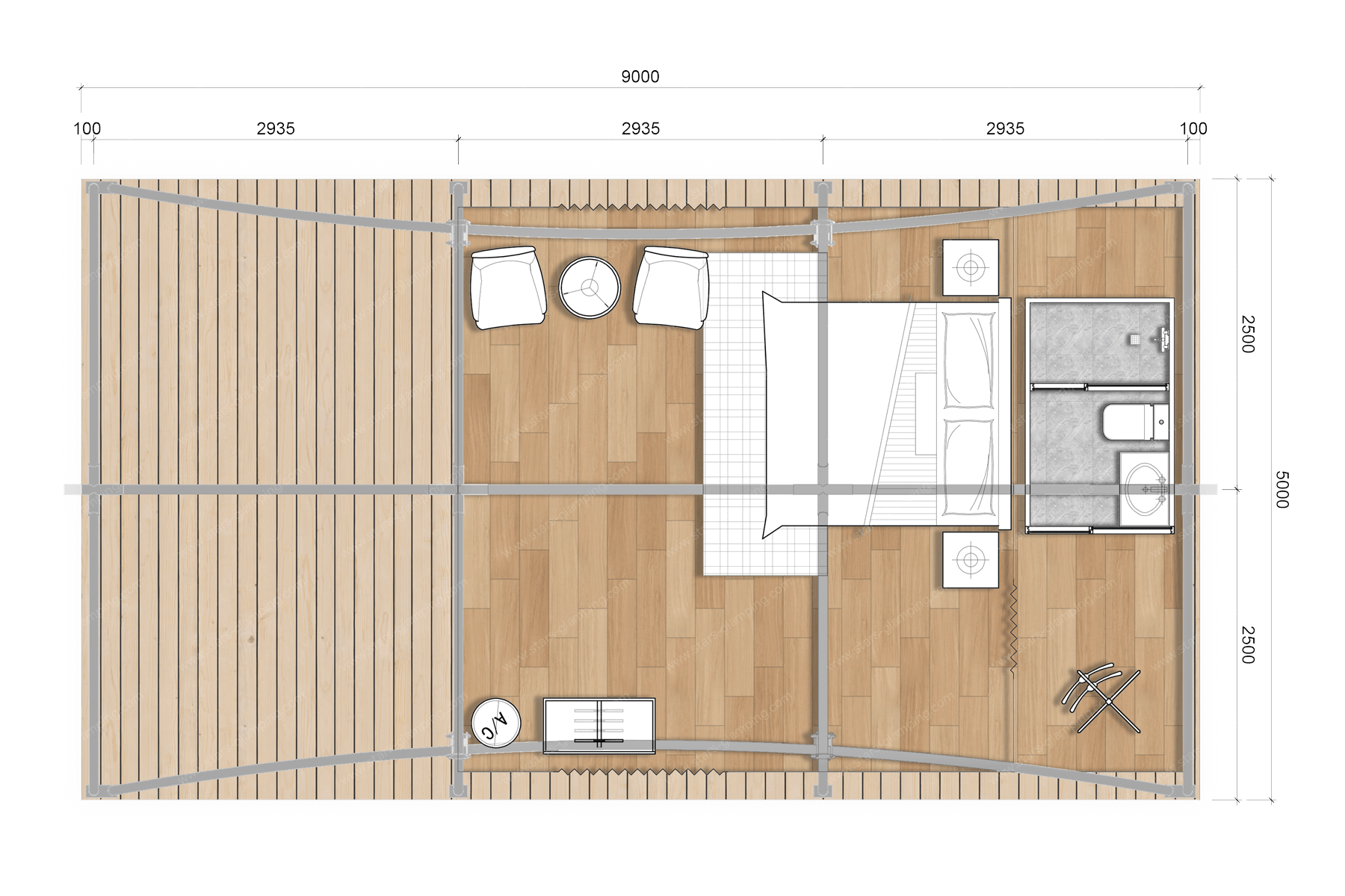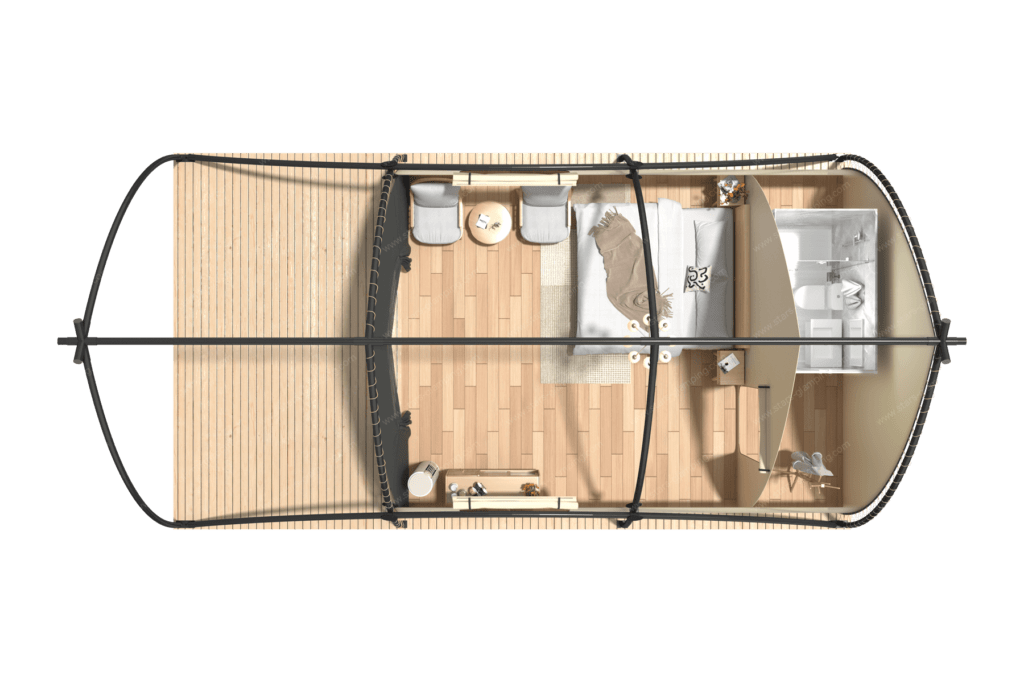 露台区域是帆船帐篷的一大亮点,宽敞的空间让客人可以享受户外的自然美景。无论是晨间的咖啡时光还是夜晚的星空欣赏,帆船帐篷都能为客人提供一个独特的体验。弧形的设计不仅美观,还能有效地增加帐篷内部的空间感。
