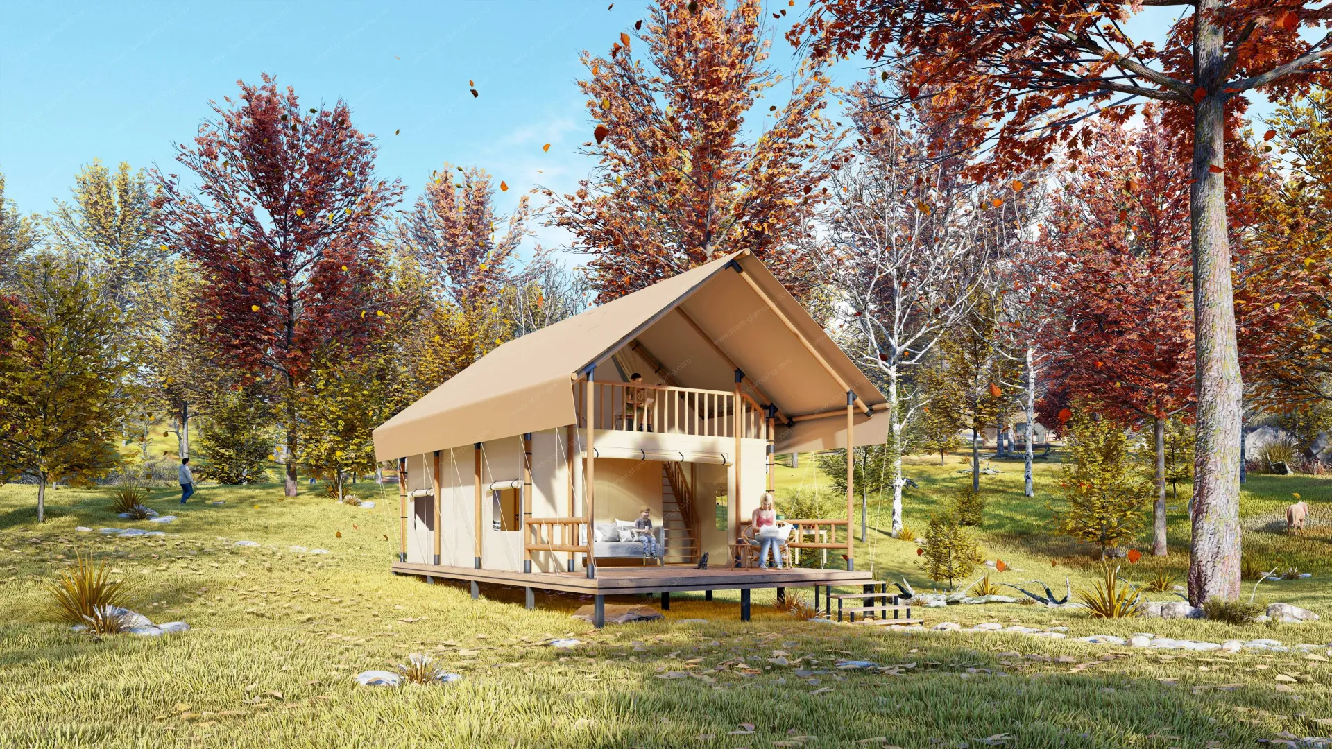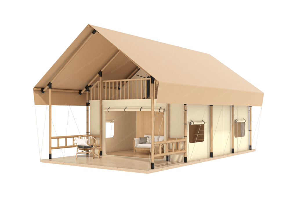 阁楼帐篷以其独特的阁楼设计和宽敞的内部空间,为客人提供一个奢华且舒适的居住环境。帐篷采用高品质材料和坚固结构,确保在各种天气条件下提供可靠的保护。