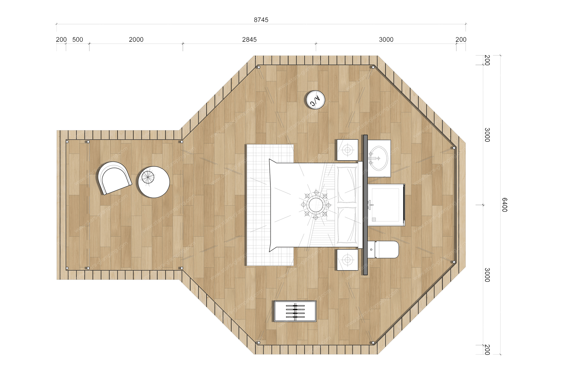内部设计宽敞,布局精巧。起居区设有舒适的沙发和用餐区,为客人提供放松和用餐的空间。独立的浴室设施现代化,确保舒适便利。卧室区域配有豪华床铺,提供极致的舒适和良好的睡眠体验。整体设计通风良好,采光充足,营造出温馨的居住环境。
