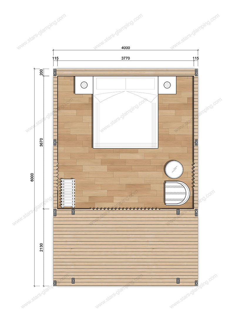 外部的露台区域宽敞,是客人享受户外美景和休闲时光的理想场所。无论是晨间的咖啡时光还是夜晚的星空欣赏,星野帐篷都能为客人提供一个独特的体验。
