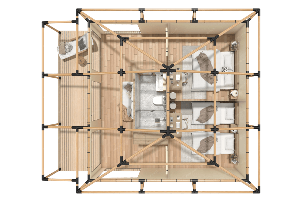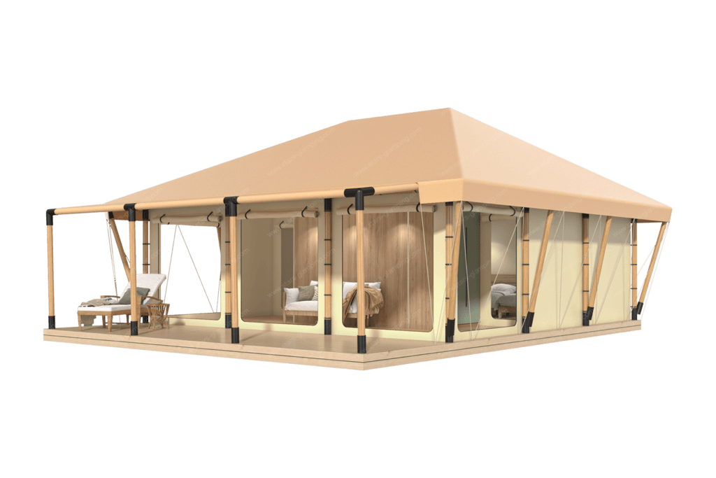 安曼帐篷以其宽敞的设计和精致的布局,为客人提供了一个豪华且舒适的居住环境。帐篷采用高质量的木材框架,确保了结构的稳固和耐用,外层覆盖使用防水和抗紫外线性能优越的布料,适应各种天气条件。